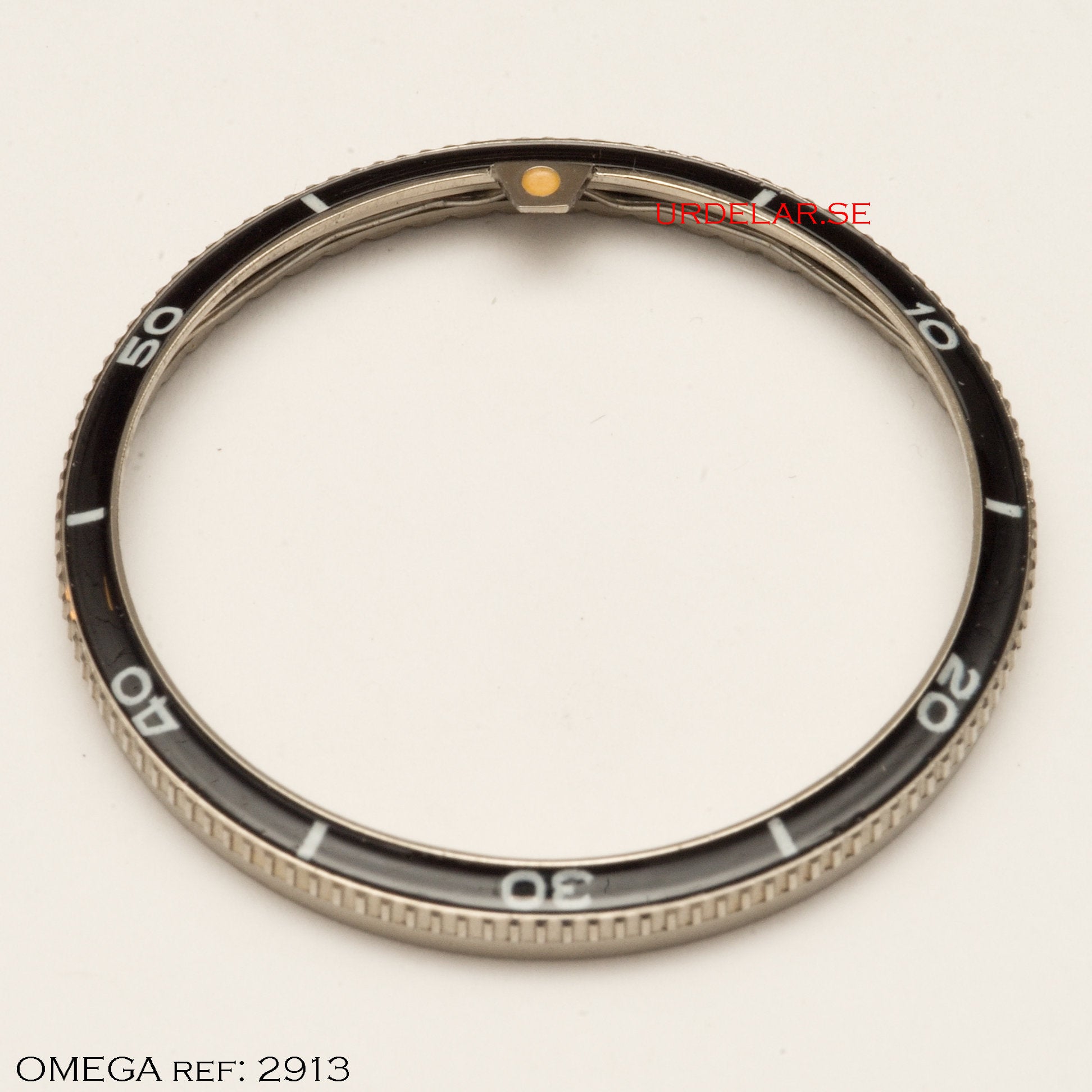Täydellisessä NOS-kunnossa oleva OMEGA Genève -alkuperäinen kellotaulu. Hopeoitu mustilla/kultaisilla indekseillä.